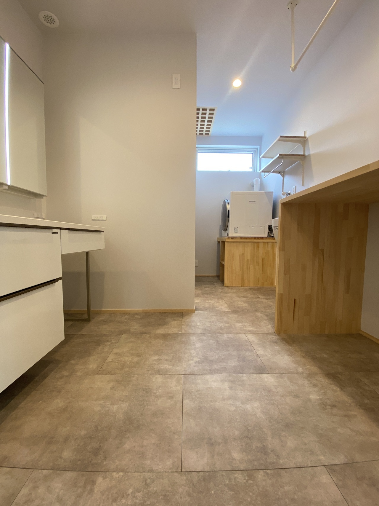 既製品の洗面台では建売と一緒で嫌だな。ちょっとおしゃれに、そして自慢したくなるような洗面脱室が欲しいーという方は造作でオリジナルの洗面台をつくっています。