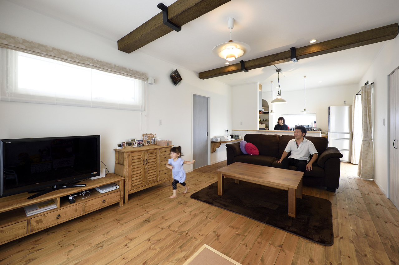 かわいいお家の場合は天井部に見せ梁を取付る事でぐっとかわいくなります。