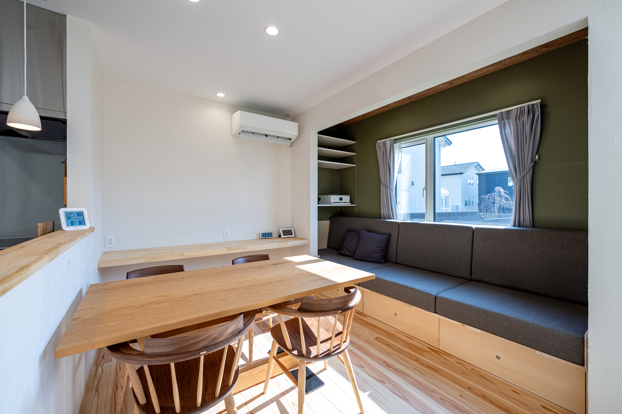 モデルハウスにあるロングのソファーと足利市T様邸のヌックをミックスした提案となります。