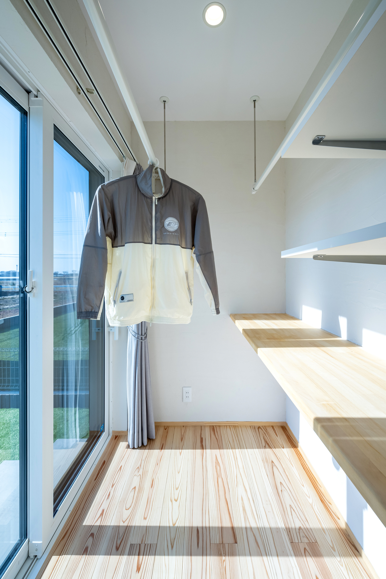 ランドリルーム内にカウンターと可動棚