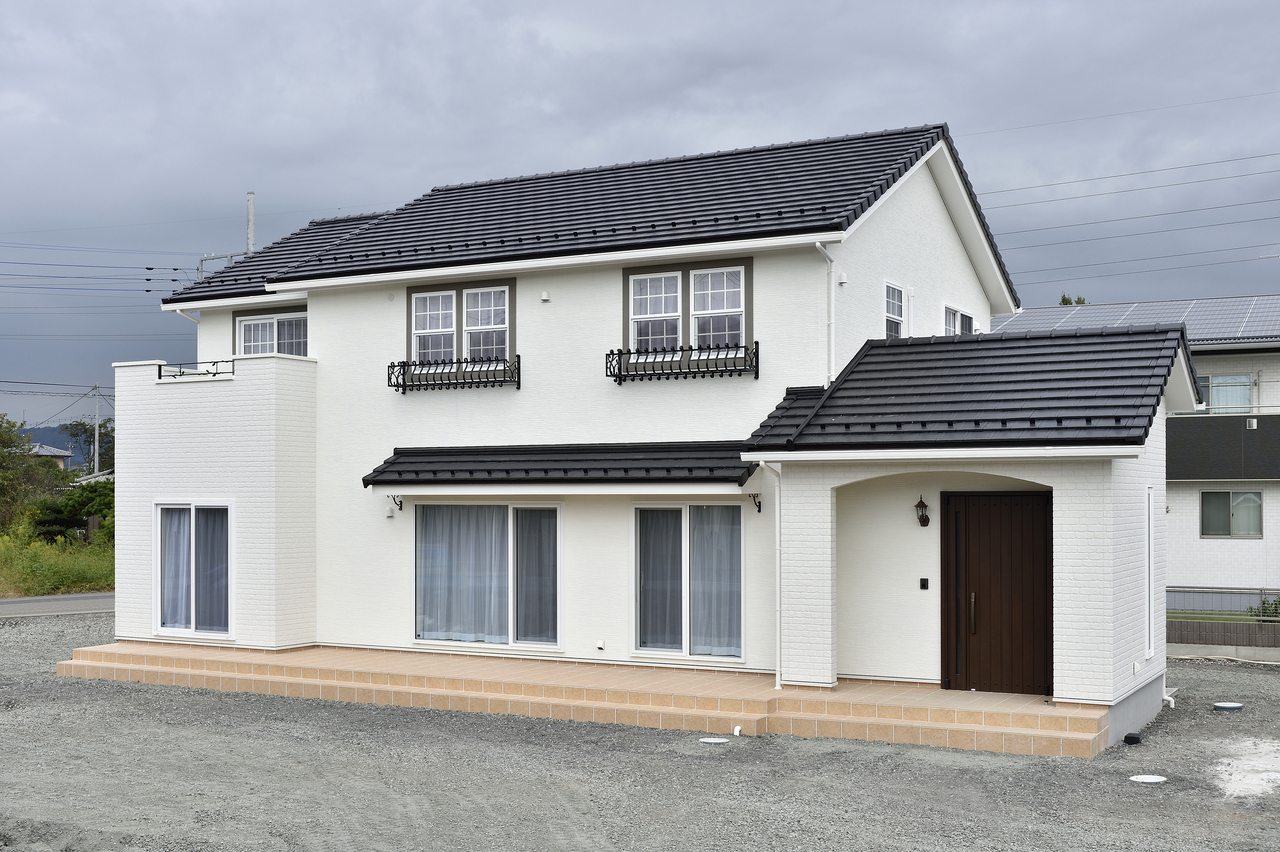 ホワイトを基調に、アーチやモールディング、フラワーボックスなどを装飾し個性のある外観を演出