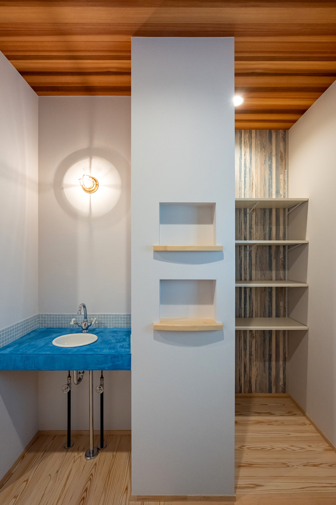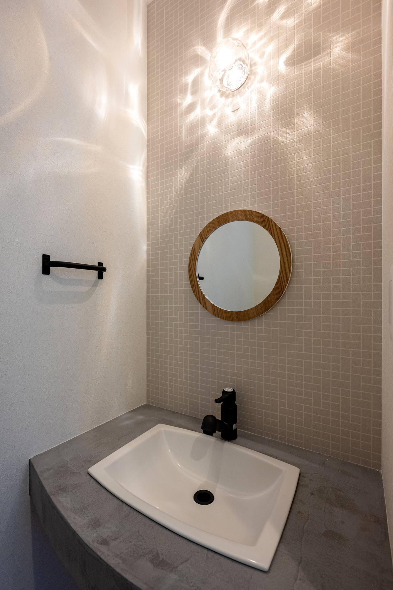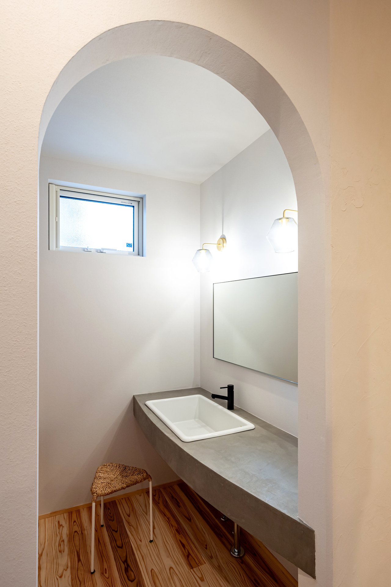 Rの湾曲が特徴的なモールテックスの洗面台
